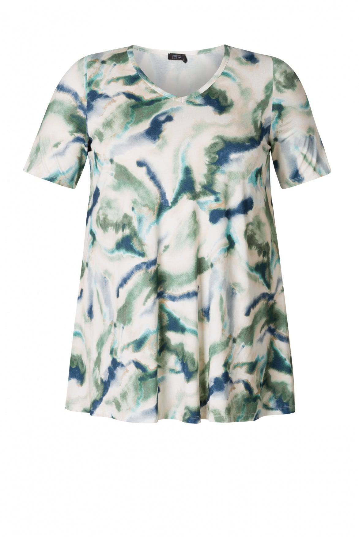 Ideal für Frauen mit mehr Bauch sind Shirts, Tuniken oder Blusen in A-Linie. Das sind diese Oberteile, die von der Brust/Taille aus nach unten hin weiter werden. Diese Form findet man häufig im Bereich der Mode in großen Größen, ob als Basic T-Shirt oder als stylische Tunika. Auch Kleider sind oft in A-Linie gearbeitet. Perfekt ist dazu ein V-Ausschnitt oder ein weiterer Rundhals, da dies optisch das Dekolleté hervorhebt und somit geschickt vom Bauch ablenkt.
