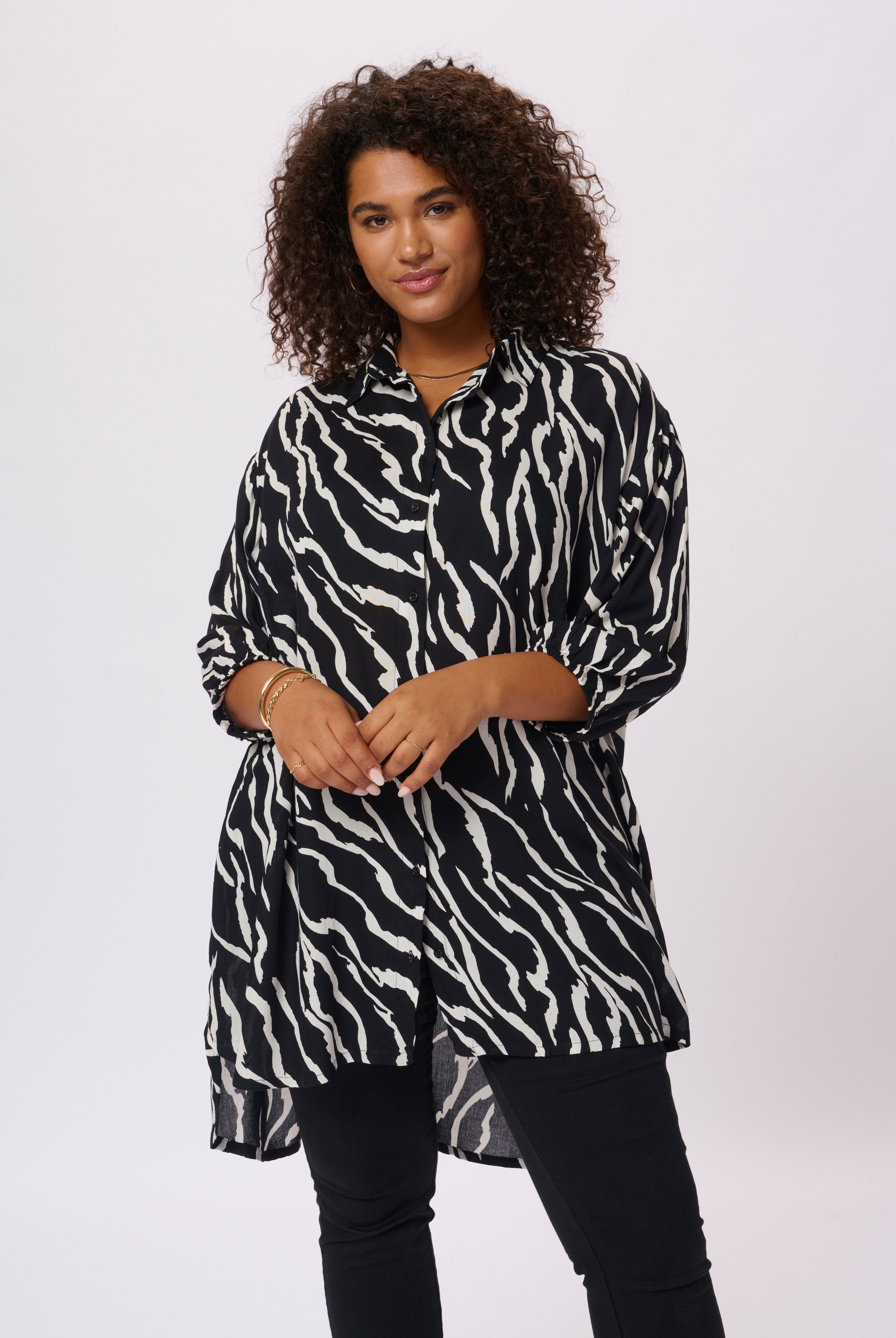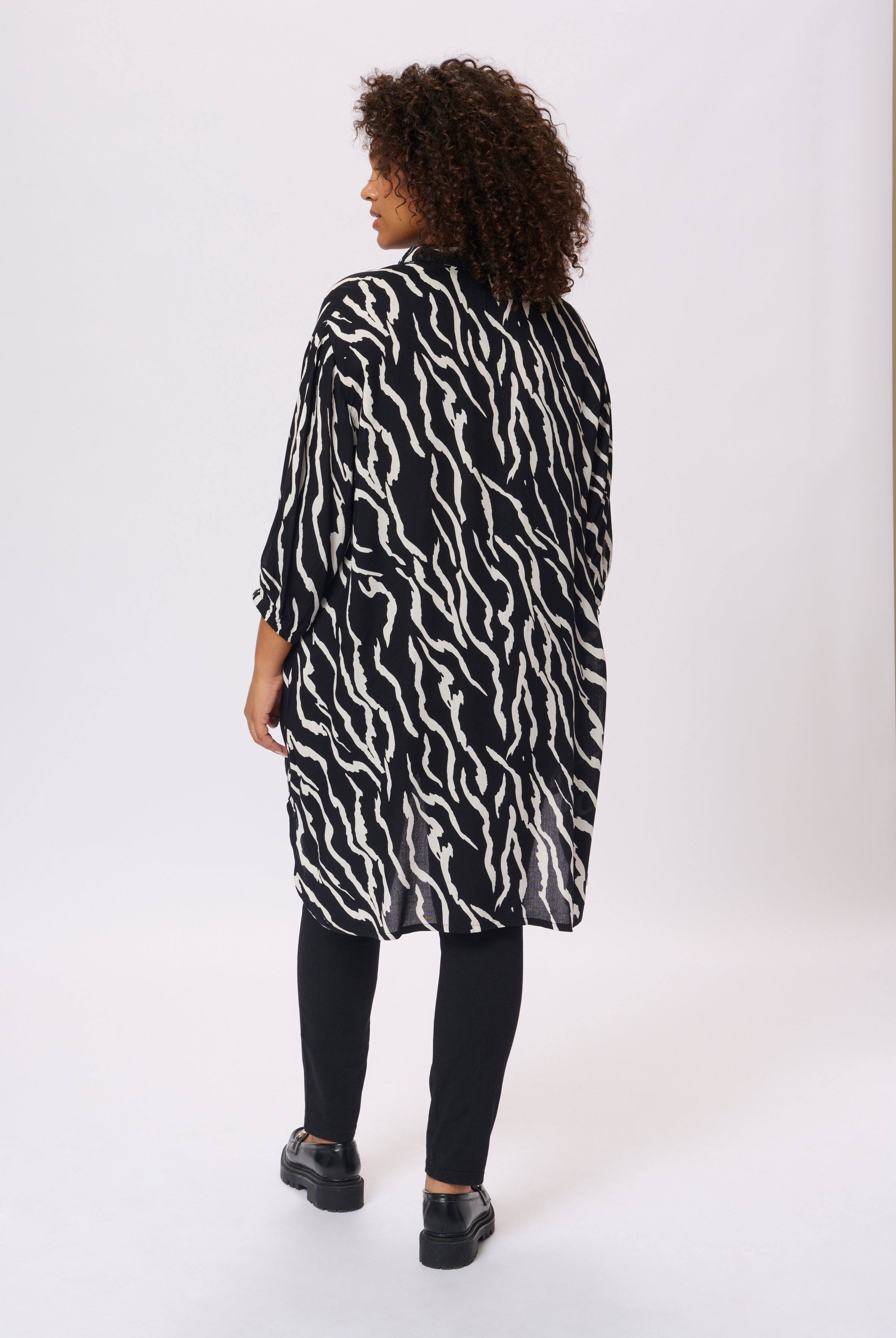 Um optisch die Körpermitte etwas zu strecken, bietet sich eine vertikale Linie an. Was bedeutet das? Offene Cardigans, Hemdblusen (offen getragen) oder Westen, bilden an den Körper-Seiten natürliche, vertikale Linien streckend wirken. Darunter Tops oder T-Shirts, fertig ist das Outift. Noch mehr Effekt erreichst du mit gemustert darunter (Tops/Shirts) und unifarben darüber (Cardigans, Hemden etc.). Probiere das doch einfach mal aus.