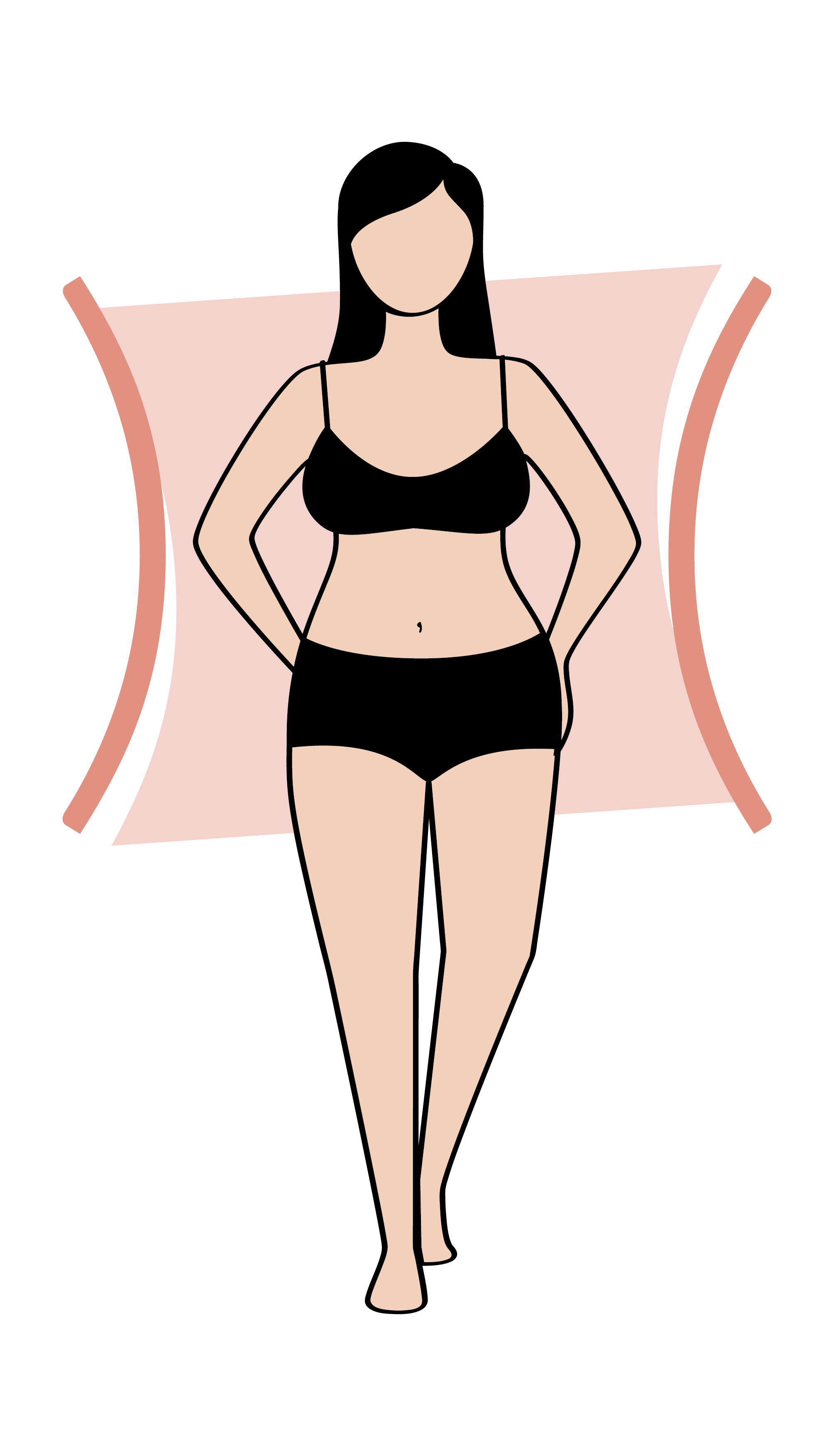 • Hüfte und Schulterpartie ungefähr gleich breit