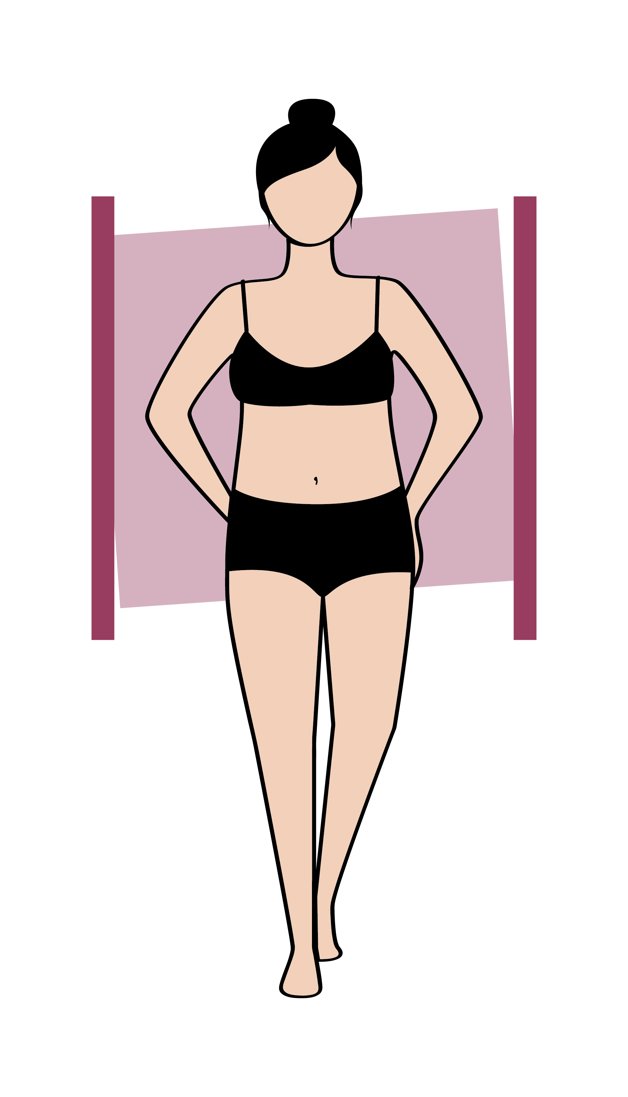 • Schultern und Hüfte, die ungefähr gleich breit sind