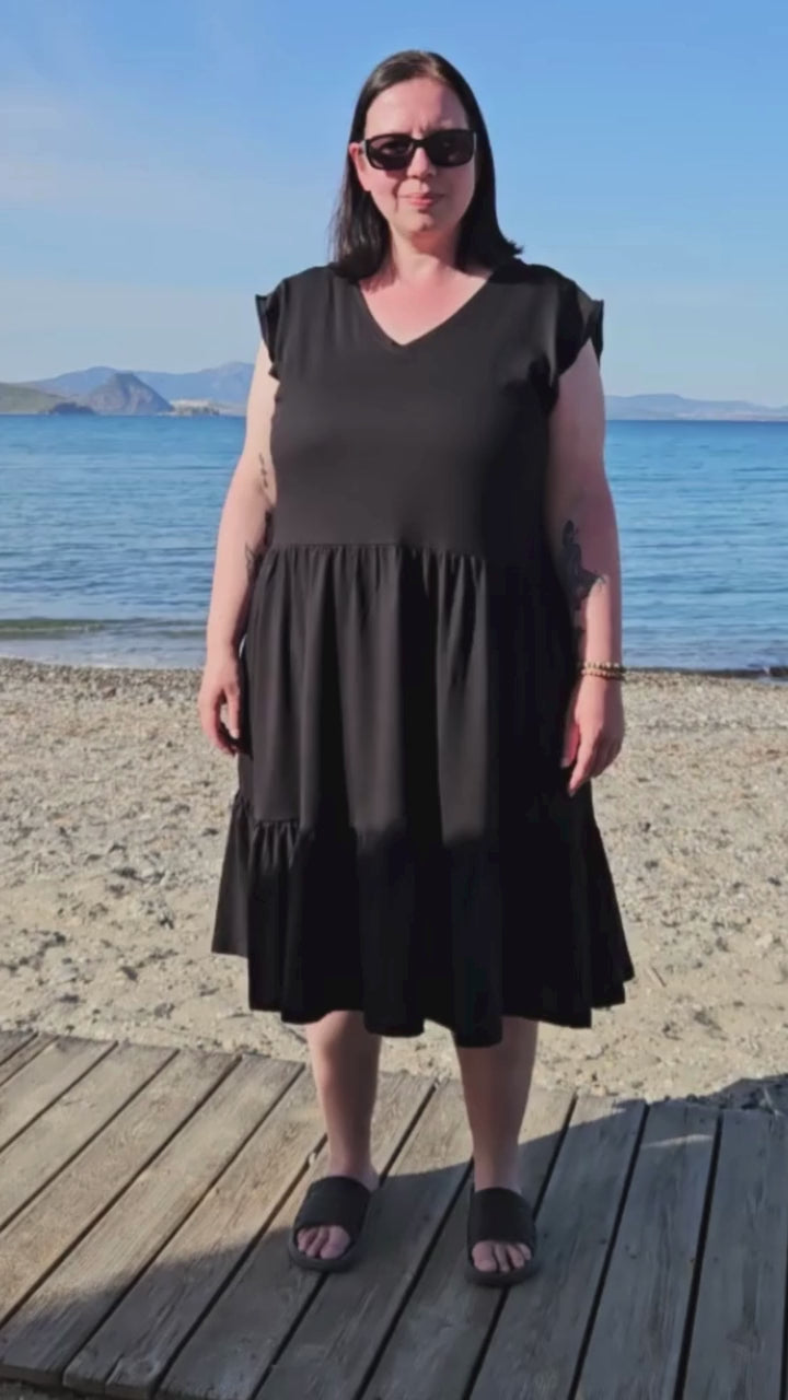 Tolles Sommerkleid aus reiner Baumwolle, Midi-Länge, ausgestellter Rockteil.