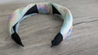 Haarreif mit Stoff (oben geknotet) im Batik-Design. Pastellfarben.