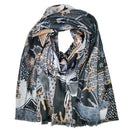 Viskose-Schal gemustert, blau-schwarz