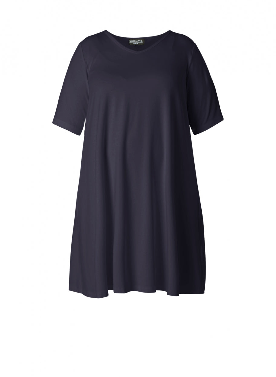 Das schlichte und zeitlose Kleid Abernathy der Marke Base Level Curvy ist ein wahrer Allrounder. Mit seinem Schnitt in A-Linie und einem Jersey aus Viskose/Elasthan gefertigt, bietet es höchsten Tragekomfort und eine perfekte Passform.