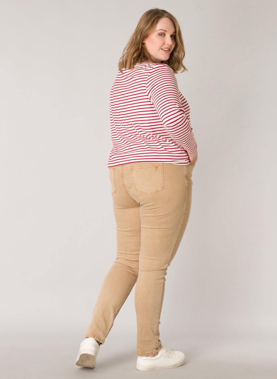 Die Stretchhose Hanna ist ein Slim-Fit-Modell mit normaler Leibhöhe und schmalem Bein.