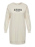 Perfekt für die Festtage oder für entspannte Weihnachtsfeiern: Das Sweatshirt-Kleid von ONLY mit kleinem Aufdruck vorn “Merry Christmas”