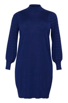 Schönes Strickkleid in einem intensiven Blau. Der Feinstrick aus Viskose mit Nylon ist sehr angenehm zu tragen. Das Kleid hat einen Rundhals und einen schönen, modernen, weiten Ärmel. Kombiniere dazu eine Strumpfhose und einen schönen Stiefel. Knielang.