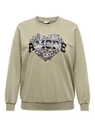 Das Sweatshirt Carlauren von ONLY Carmakoma bringt mit Herz-Applikation im Leo-Look und dem Schriftzug AMORE sofort gute Laune in deinen Plus-Size-Alltag. Der Regular Fit mit weichem, innen angerautem Material liegt angenehm auf der Haut und umspielt deine Figur entspannt – ideal für Wohlfühl-Looks in großen Größen.