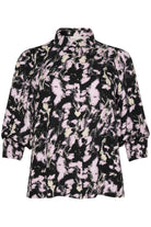 Hemdbluse mit einem 3/4-langen Ärmel, mit Gummizug am Ärmelsaum.