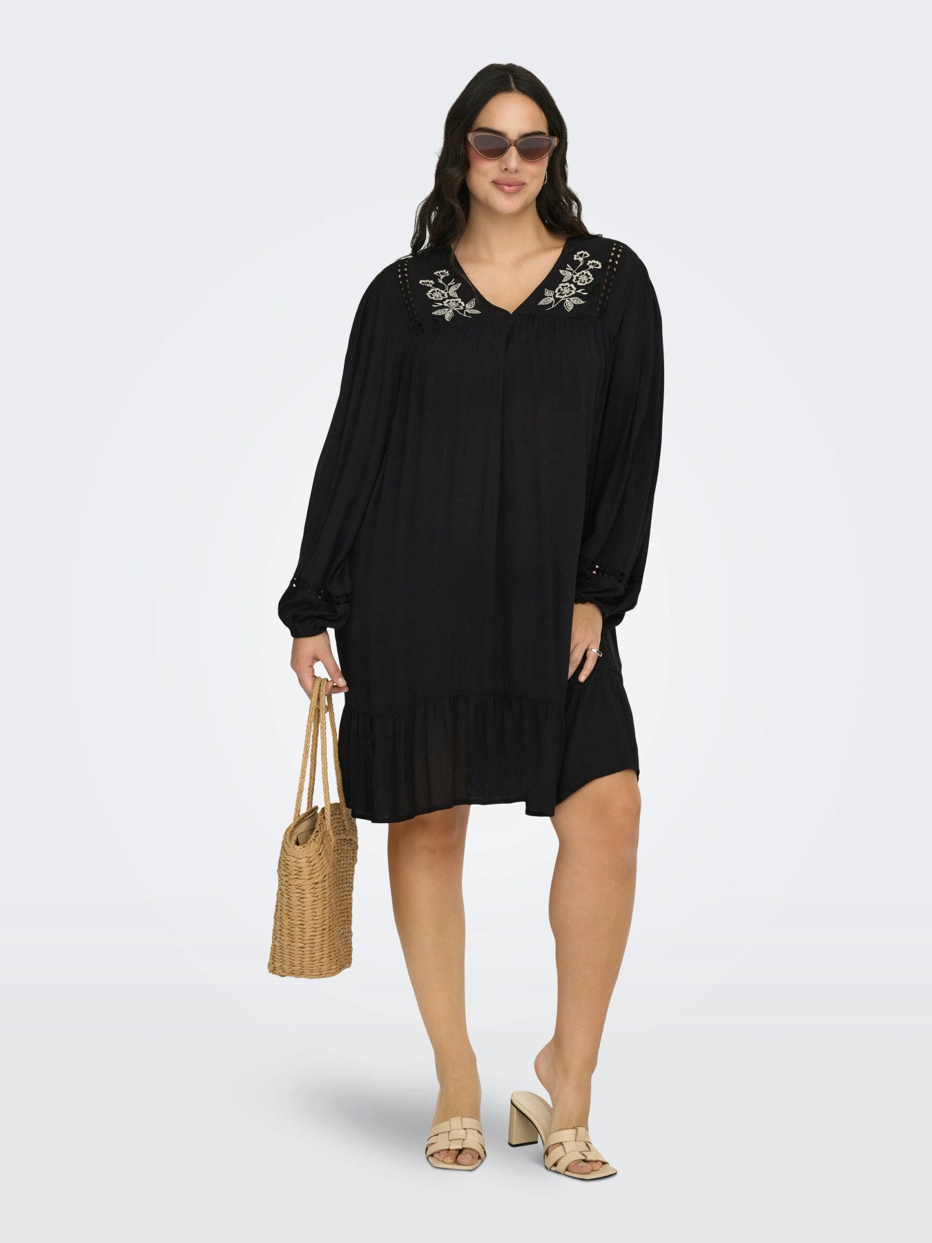 Das Kleid / die lange Tunika Cartola von ONLY Carmakoma bringt luftigen Boho-Style in deine Plus-Size-Garderobe – perfekt für entspannte Alltage mit Stil. Der lockere Loose Fit aus reiner Viskose fällt weich, umspielt deine Kurven und die feine Stickerei am Ausschnitt lenkt den Blick nach oben.