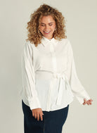 Die weiße Bluse Giselle von Yest Curve ist ein zeitloser Klassiker für vielseitige Plus Size Outfits. Als klassische Hemdbluse passt sie zu zahlreichen Looks – von Business bis Casual.