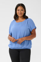 Kurzarm-Bluse KCami Stanley, hellblau - Kaffe Curve