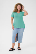 T-Shirt KCjena in A-Linie, türkis - Kaffe Curve
