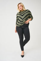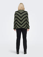 Strickpullover aus einem kuschlig weichen Material. Schöner Streifen in Oliv mit Schwarz.