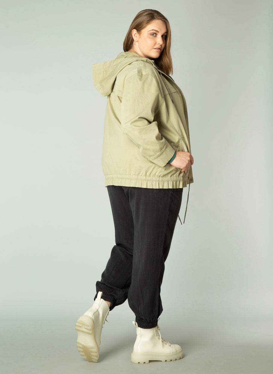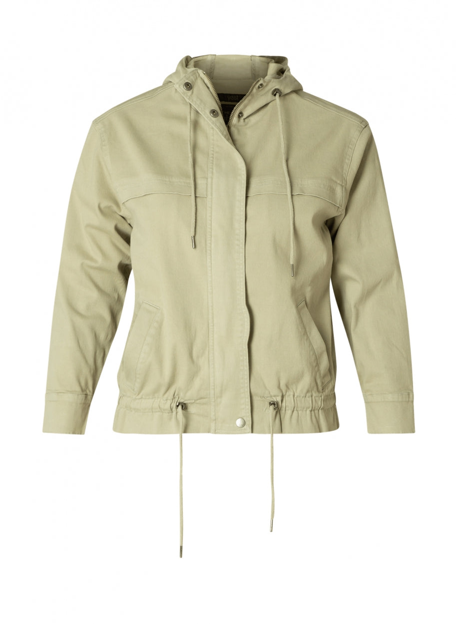 Die modische Jacke von Yesta ist mit einer Kapuze, einem Kordelzug im Bund und mit seitlichen Eingrifftaschen bestückt. Sie ist hüftlang, im Schnitt ähnlich eines Damen-Blouson und trägt sich lässig durch die angenehme Weite