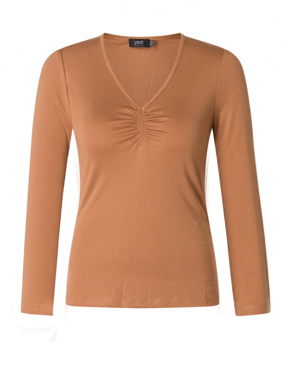 Das Langarmshirt Rowan verfügt über einen tiefen V-Ausschnitt mit Gummizug, der ein bezauberndes Dekolleté zaubert.