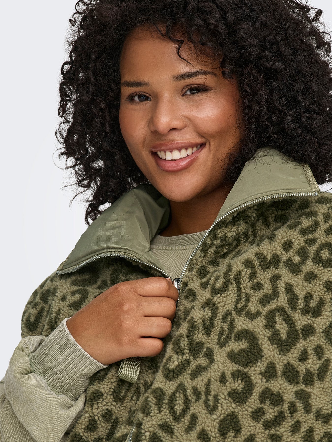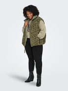 Die Wendeweste Carsif von ONLY Carmakoma ist dein stylischer Plus-Size-Allrounder für Alltag und Outdoor. Zwei Looks in einem: eine Seite clean in Oliv, die andere kuscheliger Teddy mit oliv-schwarzem Leo-Muster – dazu praktische Eingrifftaschen auf beiden Seiten für maximale Alltagstauglichkeit.