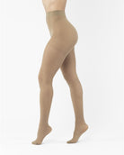 Hautfarbende 30 Denier-Strumpfhosen mit hohem Bund. Sehr dehnbar, schmiegt sich an den Körper an. Geeignet für alle Schuhgrößen.