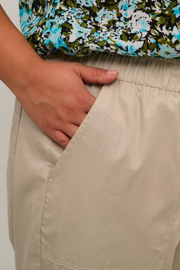 Sommerhose mit komfortablem Gummizugbund, seitlichen Eingrifftaschen und einer sehr bequemen Beinweite. Auch für Lipödem-Beine geeignet.