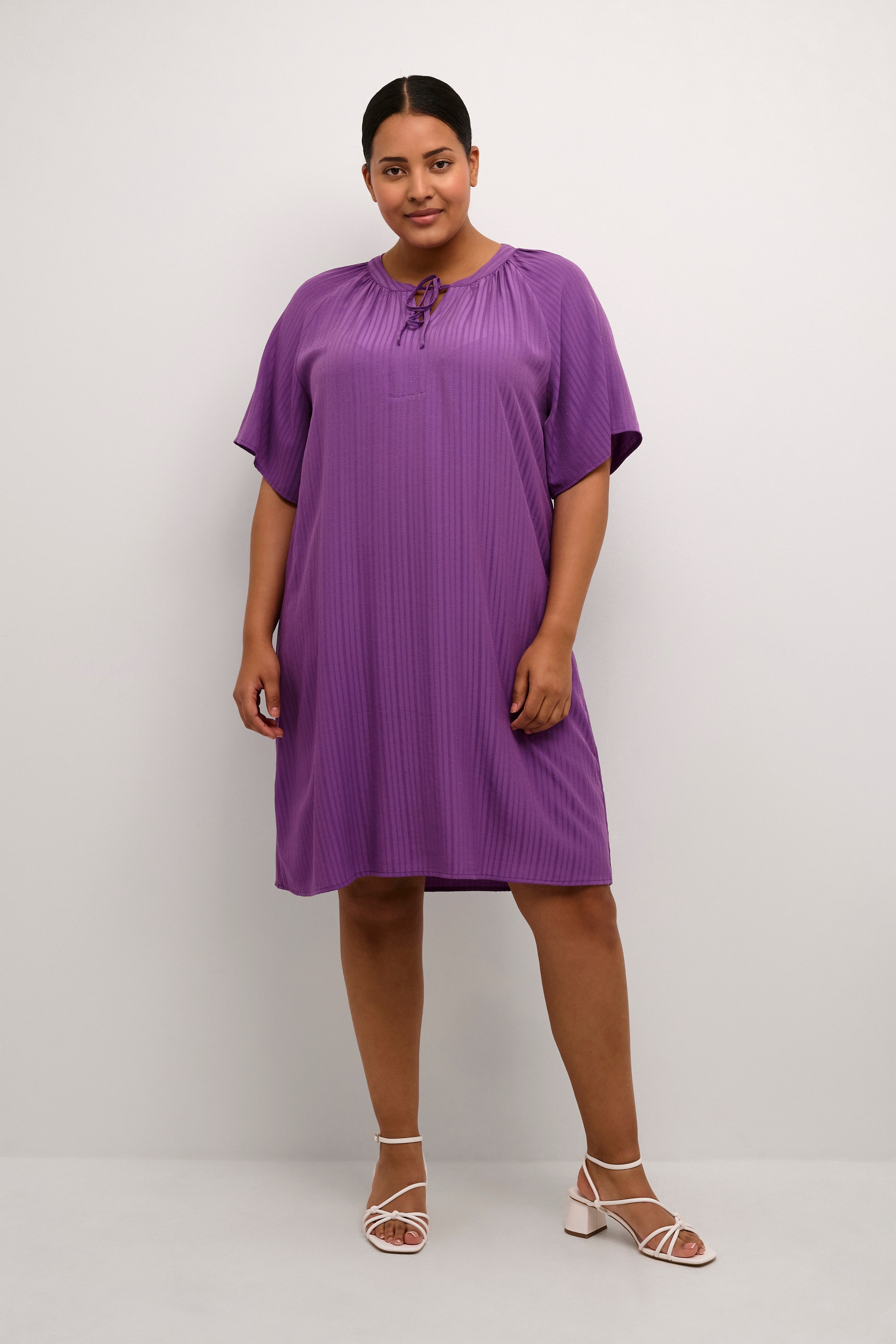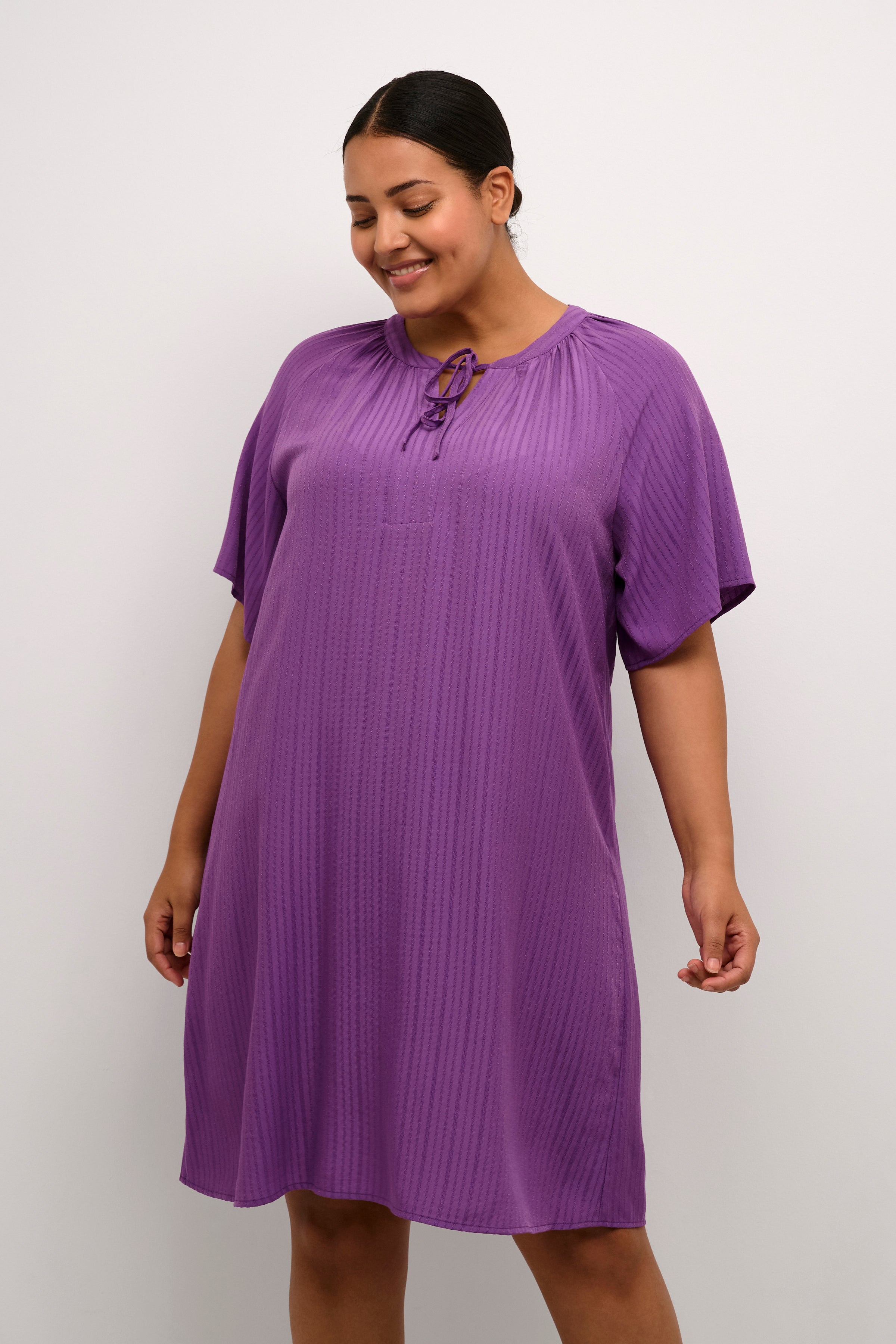 Schlichtes Kleid mit Halbarm und toller Farbe! Das Material ist leicht schimmernd mit leichter Streifenoptik.