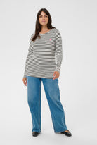 Langarmshirt KClia gestreift, schwarz weiß - Kaffe Curve