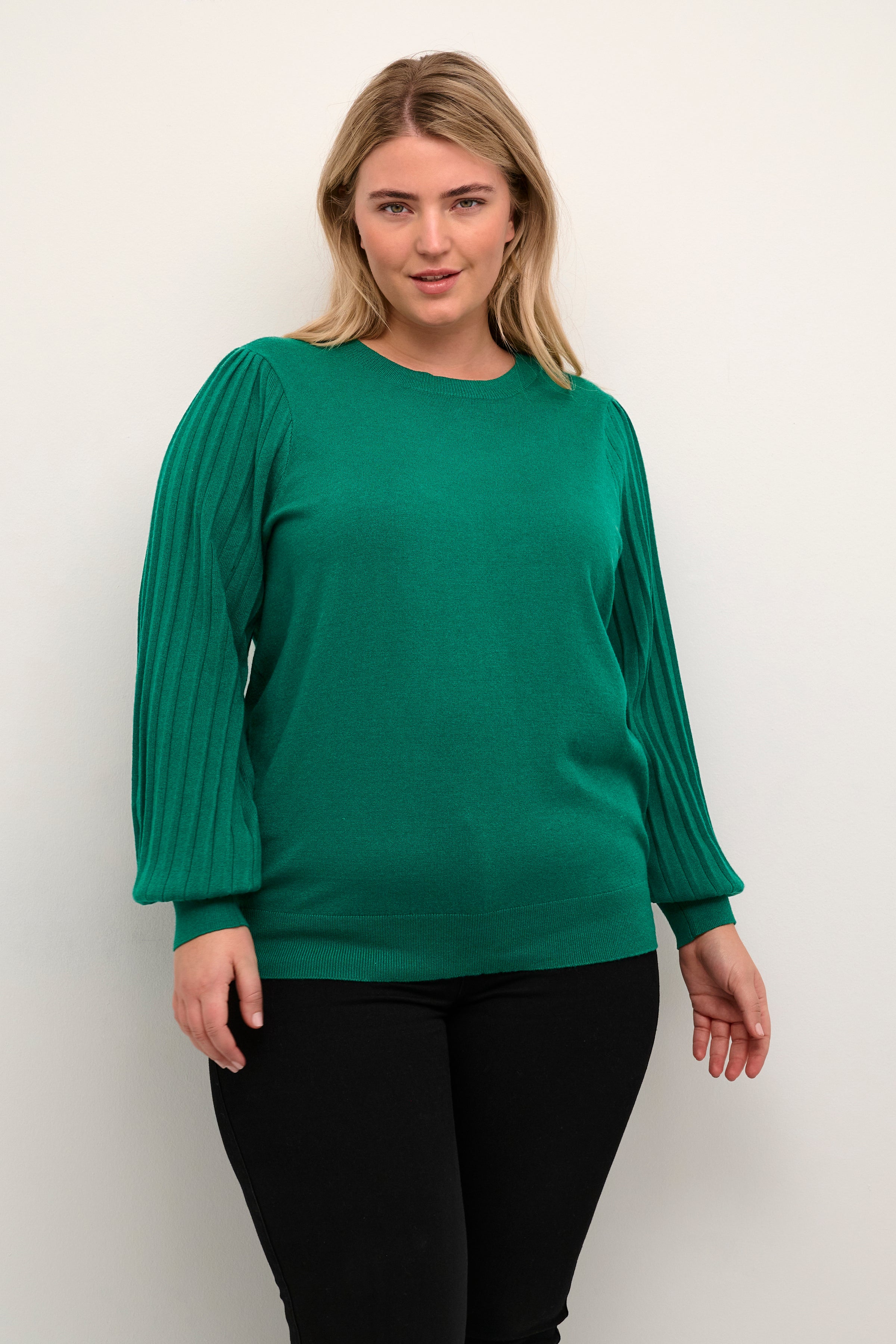 Der Pullover hat moderne, weite Ballonärmel und bietet auch kräftigen Oberarmen genügend Platz.