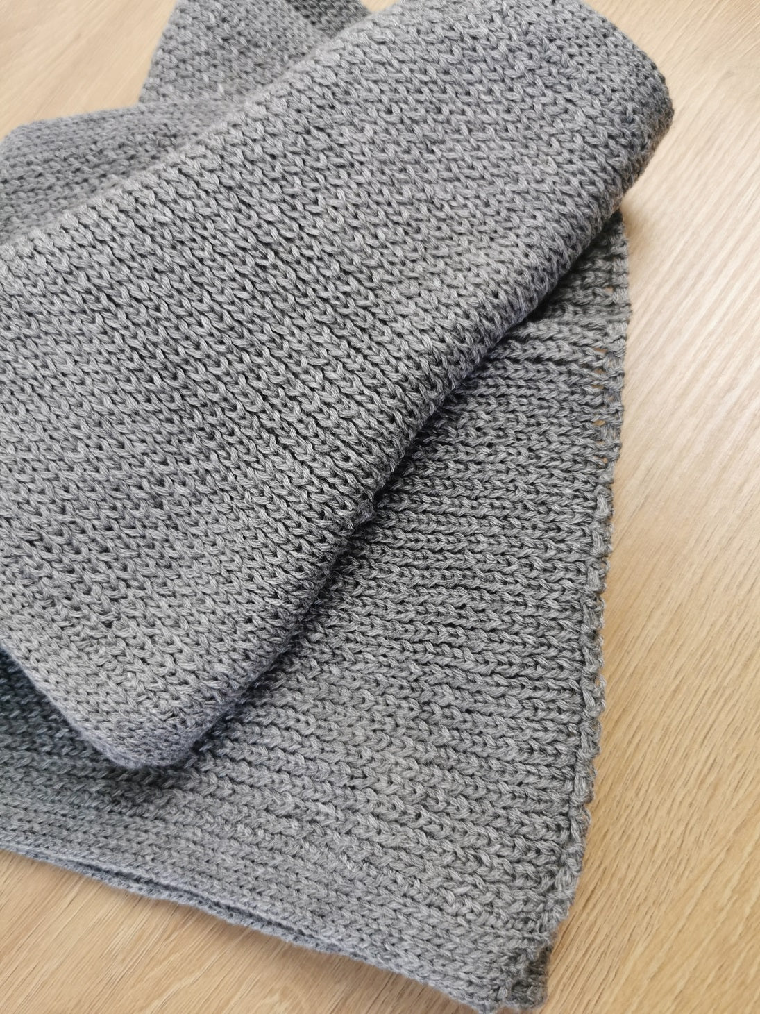 Leichter Winterschal in Häkeloptik, grau. Ohne Fransen.