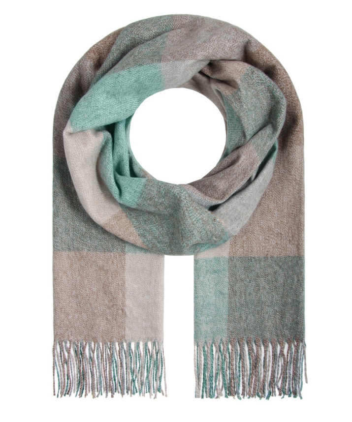 Schöner Winterschal mit Fransen und einem großkariertem Muster.
