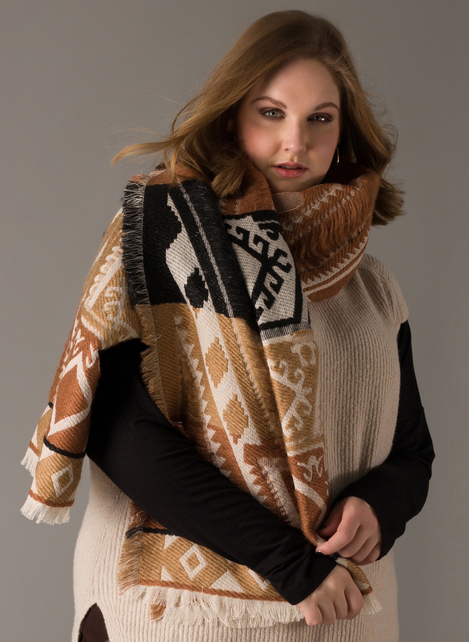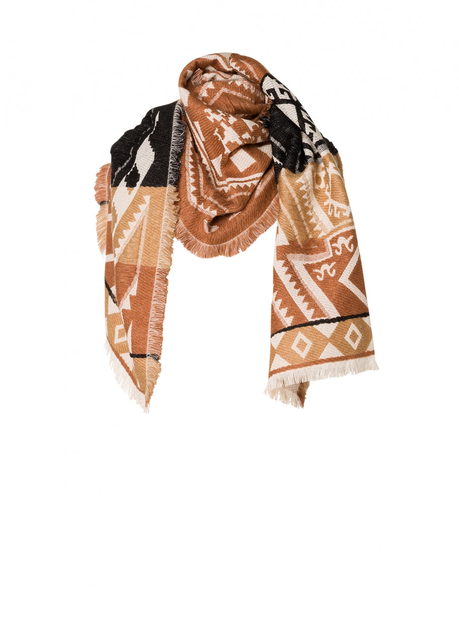 Großer Winterschal aus Jaquard-Webstoff. Bedingt durch das Material ist der Stoff nicht so weich/soft, sondern eher etwas steifer. Es ist ein wirklich großer Schal.